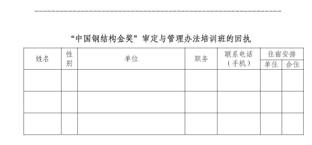 五、暑期進(jìn)入首都旅游高峰季節(jié),為做好培訓(xùn)人員的接待事宜,請(qǐng)參加培訓(xùn)的人員于2013年8月5日前將回執(zhí)返回鋼結(jié)構(gòu)委員會(huì)。